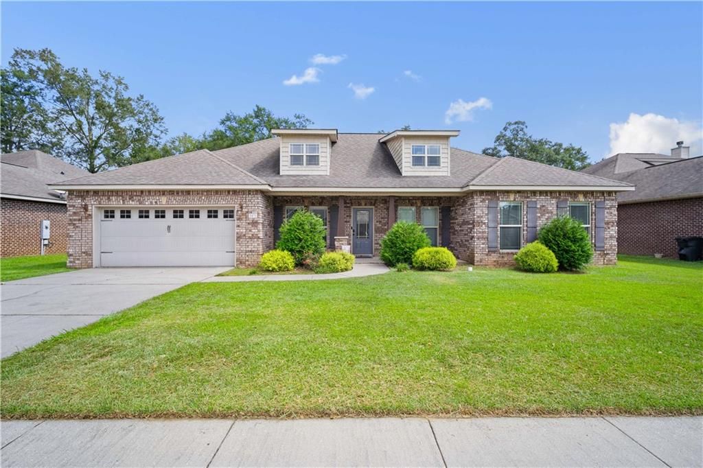 This classic brick ranch house on just over an acre is ready for you! You will have plenty of room on the property for all your projects, and there is even a 24x26 shop with electricity just off the driveway. There are granite counters in the kitchen and both bathrooms, no carpet, AND a metal roof!! This floor plan offers 3 bedrooms, 2 baths, a large kitchen with plenty of room for your table, PLUS a dining room, AND a bonus room at the front of the house. A lovely brick fireplace is the focal point of the family room. There is a laundry room and an attached storage room under the carport. All appliances to remain with the home. Welcome home to quiet country living that is still just mintues from I-10 for convenient access to Mobile and Mississippi.